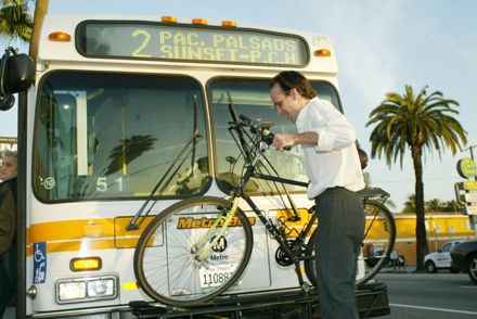 Erst nach einigen Tagen finde ich eher zufällig heraus, dass die geringe Zahl der Fahrradfahrer die Stadt nicht davon abhält, einen Service zu bieten, den ich in Europa noch nie genießen konnte: Fast alle Autobusse in L.A. haben an der Vorderseite einen Fahrradständer. Herunter klappen, Fahrrad festschnallen und los. Für sich selbst kauft man für sechs Dollar – etwa vier Euro – eine Tageskarte, das Fahrrad darf man umsonst mitnehmen. Und urplötzlich ist man nicht länger ans Zentrum gebunden, die komplette Riesenstadt ist in Reichweite. L.A., here I come.