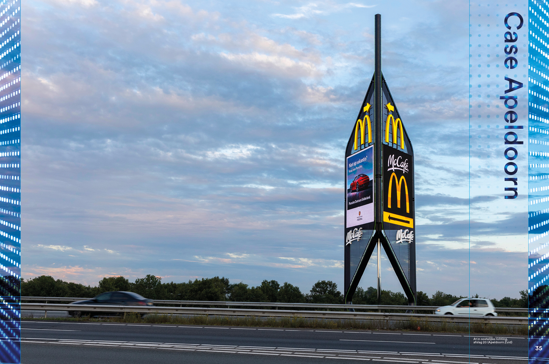 Wie over de A1 rijdt kan de reclamemast bij afslag Apeldoorn-Zuid met geen mogelijkheid missen. En precies dat is de bedoeling van Henk Koning, eigenaar van de mast, tevens franchisenemer van het McDonald’s filiaal aan deze afslag en vijf andere filialen.