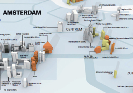 Hoogbouw weerspiegelt de economie van de stad. Investeerders en ontwikkelaars kijken waar grote winsten te verwachten zijn, daar vloeit het kapitaal naartoe. Onder andere naar de Zuidas dus, maar de skyline daar zal er, zoals gezegd, niet wezenlijk door veranderen. Waar dan wel? Niet in West en de Bijlmer in ieder geval, die vallen bij de nieuwe hoogbouwgolf buiten de prijzen: aan de A10-West staan twaalf torens, daar komen er slechts twee bij. De Bijlmer is goed voor tien hoge gebouwen, maar daar komt geen enkele bij.