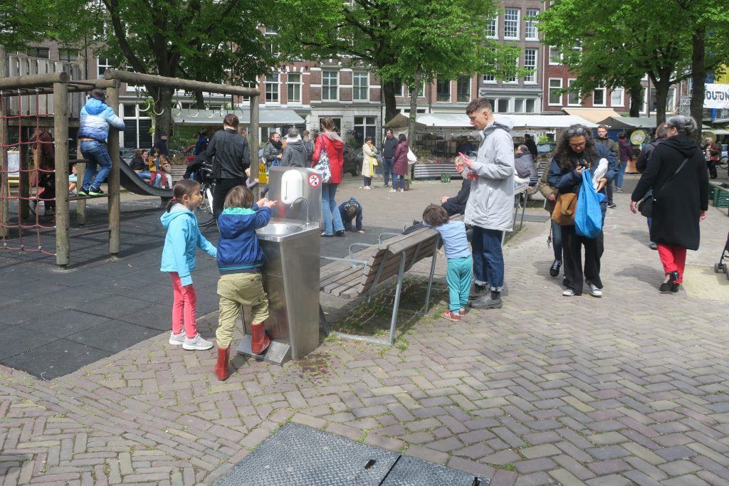Weer is het zaterdag, weer is het mooi weer en weer ben ik op de markt, maar de Noordermarkt oogt aanvankelijk heel anders dan de arme Bos en Lommermarkt. De biologische kramen aan de voet van de zeventiende-eeuwse Noorderkerk, de lindes op het plein zelf en de iepen langs de Prinsengracht, het lijkt wel een plaatje van Anton Pieck. ‘Groente en fruit niet aanraken’, staat met krijt op een schoolbord geschreven, een ander bord waarschuwt: ‘Graag achter de lijn wachten tot u naar voren wordt geroepen’, op twee plekken staat een mobiel fonteintje waar klanten hun handen kunnen wassen.