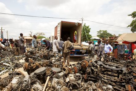 Overal zit handel in, van zijspiegels tot elektrische bedradingen en van rupsbanden tot tankdoppen, maar opvallend genoeg niet in complete auto’s. Sinds 2002 staan daar namelijk hoge importheffingen op, bij auto’s ouder dan vijftien jaar betaal je zelfs een kwart van de nieuwprijs. Een oud boodschappenwagentje als de Nissan Micra, dat in Nederland voor minder dan vijfhonderd euro te koop is, moet daardoor in Ghana ineens drieduizend euro opleveren, nog los van de transportkosten en de marge van de handelaar.
