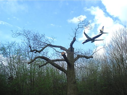 Het vliegveld van Stansted is reusachtig: ruim twintig miljoen passagiers per jaar, tienduizend vierkante meter shops, 120 checkin-desks. Achter de uitgestrekte parkeerplaatsen vind ik met moeite het landweggetje naar Molehill Green. En letterlijk in dezelfde minuut ben je op het Engelse platteland: openbare wandelpaden met verweerde bordjes, rietgedekte schuren en huizen, lage heggen die de akkers scheiden. En rust, want zo dicht bij de luchthaven loop je letterlijk in de luwte van de smalle corridor die de vijfhonderd dagelijkse vliegtuigen gebruiken. Je kunt de loop van hun route precies volgen aan de gekortwiekte bomen.
