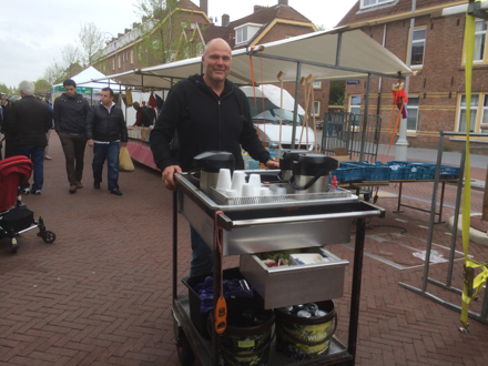 Al vanaf zijn tiende voorziet Marcel Onclin de marktkooplui van koffie. Vanuit café De Bult, dat zijn broers in 1965 waren begonnen, liep hij aanvankelijk met dienbladen over de markt, het karretje kwam pas later. Veertig jaar deelde hij lief en leed met de kooplui op het Mosveld en toen de markt afgelopen september naar de Van der Pekstraat verhuisde, ging hij natuurlijk mee.