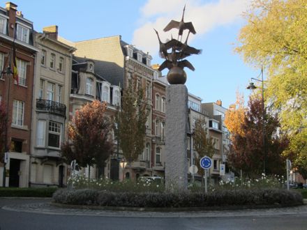 Elk jaar jaar opnieuw neemt de burgemeester van Sint-Pieters-Woluwe het besluit dat betogingen gedurende de maand april verboden zijn op de R. Vandendriesschelaan, de Julius Caesarlaan en de Pater E. Devroyestraat en met name op het punt waar deze drie samenkomen en een rotonde vormen. Betogingen in het brave, welgestelde Sint-Pieters? En juist op het punt waar vijf kraanvogels opstijgen uit een ei? Akkoord, het geluid van deze vogels is ronduit schreeuwerig, maar verder zijn ze uiterst vredelievend.