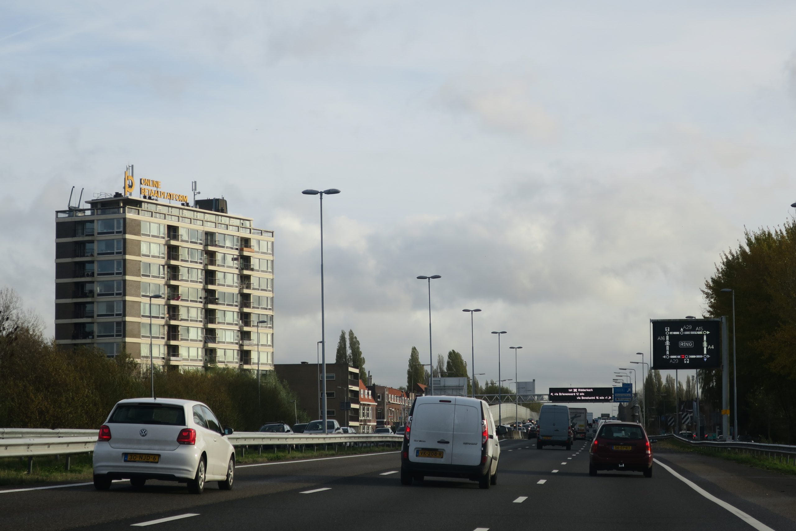 I drive down 11 floors, turn onto the A27 and continue my rounds. Though the Amsterdam-Utrecht region has the highest growth rates of the country, I am soon surrounded by green once more. Near the intersection with the new railway bridge to Almere, a road-side ANWB sign announces that there is not only petrol to be had in about 1 km, but information about Amsterdam as well. However, at De Hackelaar, the petrol station that famously lent its name to a criminal, they profess ignorance. Even the city map that once adorned the walls of all petrol stations is nowhere to be seen. Though the city is increasingly involved in highway matters, the interest is not mutual. Even though Amsterdam is only 5.5 km further down the highway, it is still a completely different world.