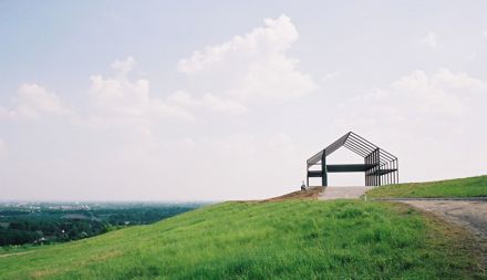 Een boerderij annex universiteit dus, maar toch speelt ook de sacrale ervaring bij het Hallenhaus een rol, zowel voor de paserende automobilist die het vanaf de omringende snelwegen majestueus ziet liggen, als voor de wandelaar die de tachtig meter hoge heuvel beklimt en op de top aangekomen het weidse landschap in alle rust kan betrachten. Deze basale eenvoud is des te pregnanter als je je realiseert dat de prijsvraag die voor de berg was uitgeschreven eigenlijk vroeg om aanvullende voorzieningen voor rodelen, hanggliden en andere recreatiesporten. Geen sprake van, was de reactie van het Observatorium, en hun pleidooi voor een Berg der Stille werd beloond met de eerste prijs.
