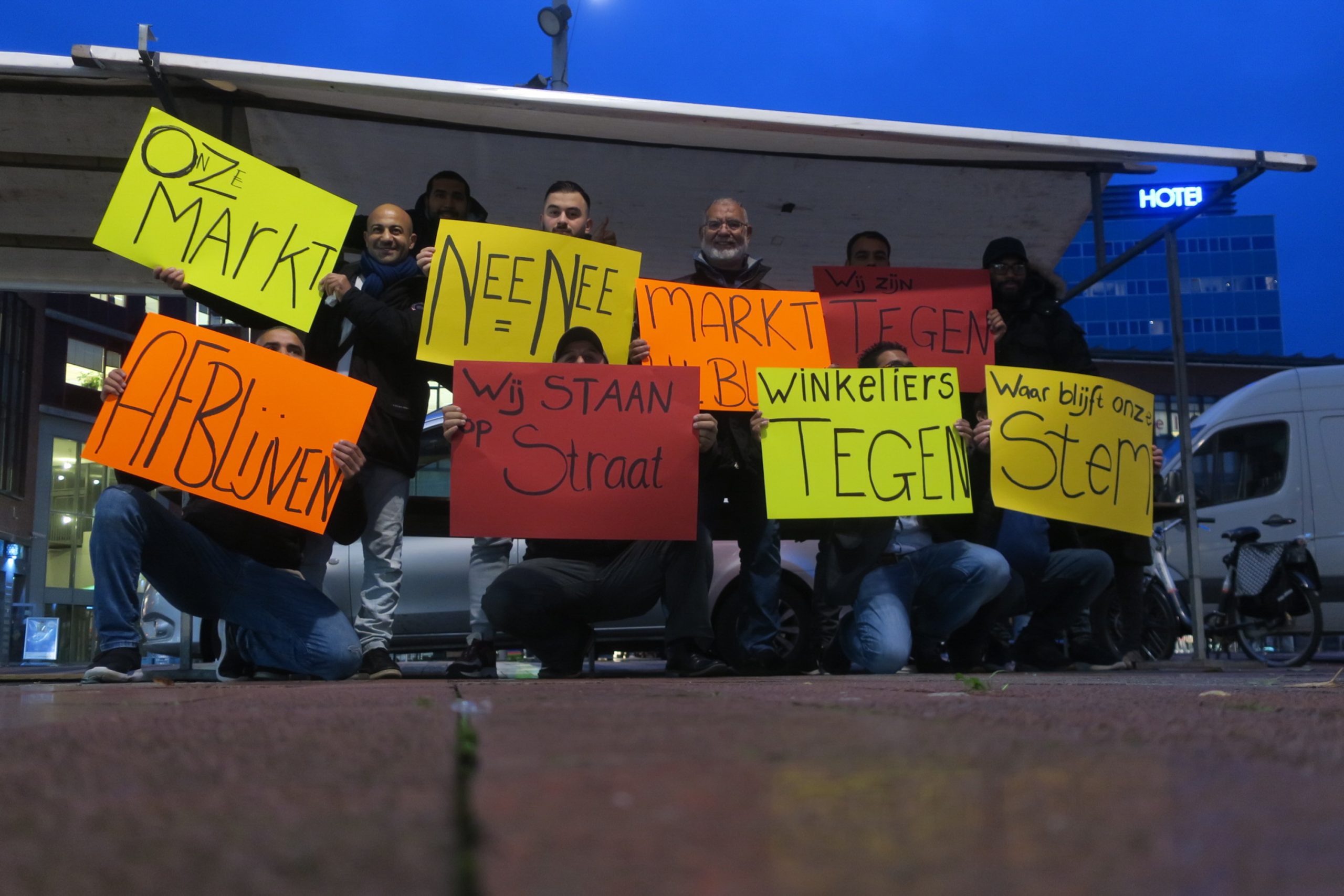 De marktverkopers reageren furieus. Dinsdagavond trokken ze naar het stadsdeelkantoor. Op 19 en 26 november krijgen ze de gelegenheid om in te spreken.