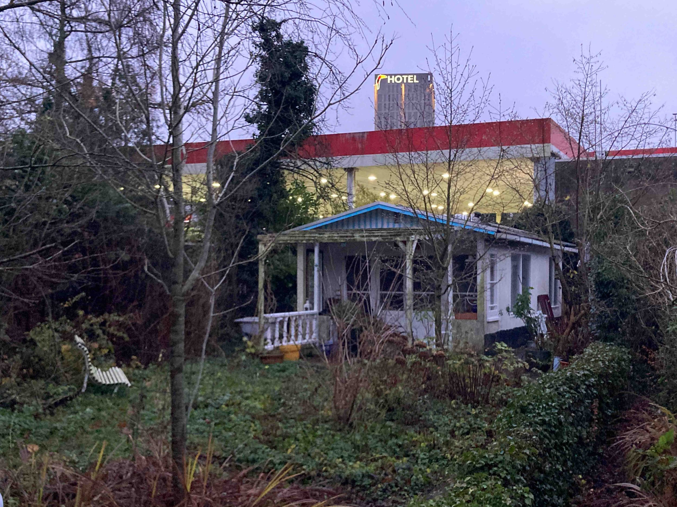 Onder de Utrechtsebrug door en het wordt weer echt stedelijk. Aan de overkant van de Duivendrechtsevaart lag vroeger de Zuidergasfabriek, nu verrijzen daar de bouwblokken van het Amstelkwartier. Loop langs de strip met hotels naar het zuiden, met aan je rechterhand het stukje A2 dat de komende jaren zal worden afgewaardeerd tot een stadsstraat. Dan zal knooppunt Amstel definitief getemd zijn.