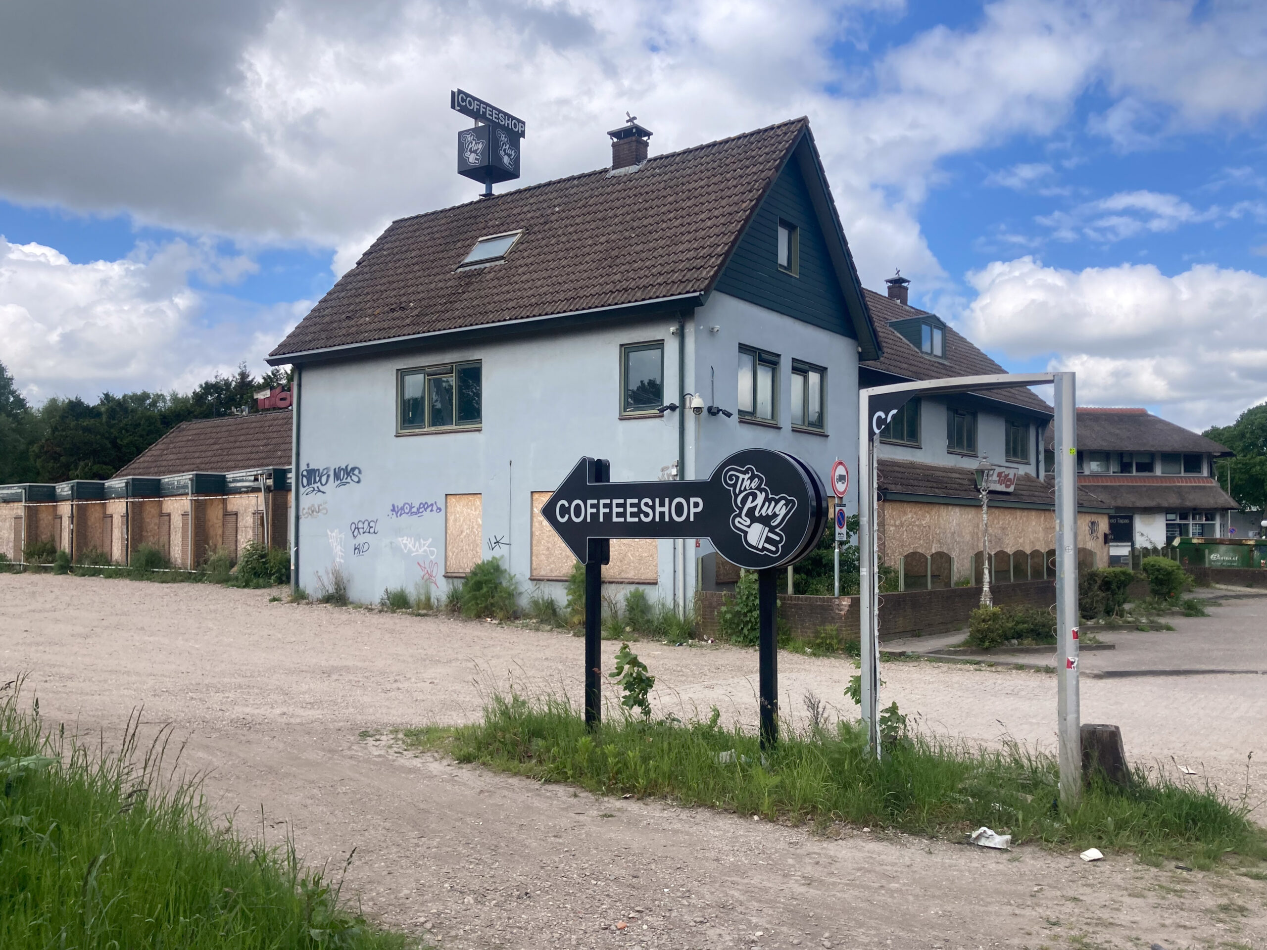 ‘Vroeger zaten hier twee wegrestaurants waar touringcarbussen bejaarden afzetten voor de lunch, het ene heette Schep, het andere De Struik.’ Richters vertelt hoe de klad in dat soort recreatie kwam en hoe eind jaren negentig bovendien de gemeentegrens wat werd opgeschoven om Amersfoort de ruimte te bieden om te groeien: de wijk Vathorst moest worden gebouwd, ook was ruimte nodig voor bedrijven. ‘Ineens lagen deze gebouwen in Amersfoort en toen de stad een locatie zocht voor een coffeeshop, lag dit natuurlijk lekker uit het zicht. Maar voor veel inwoners van Hoevelaken is dit juist de entree van hun dorp, dus die zijn daar helemaal niet blij mee.’