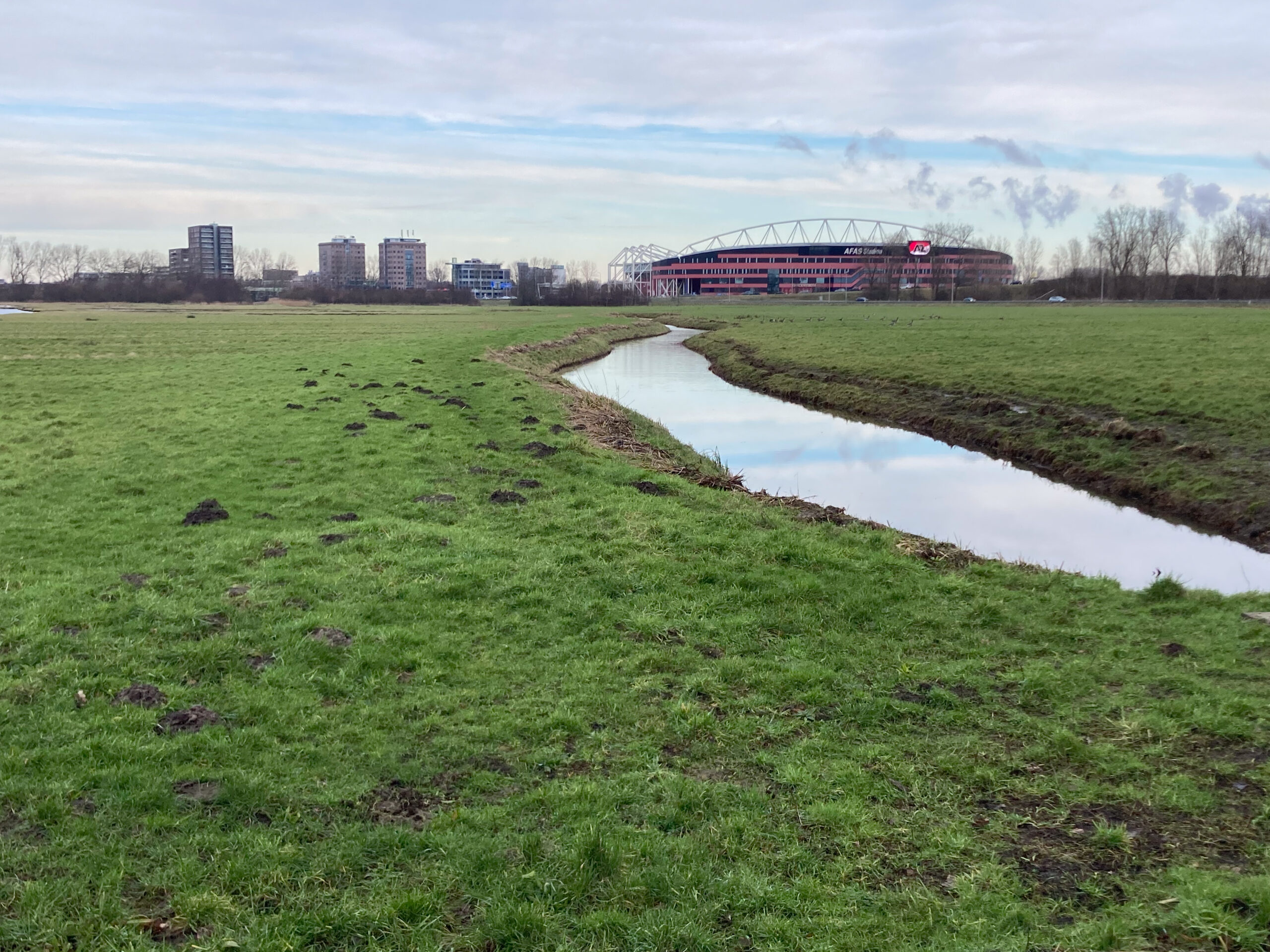 Knooppunt Kooimeer heeft twee gezichten, of eigenlijk drie. Maar waar je ook loopt, bijna voortdurend zie je het voetbalstation van AZ liggen.