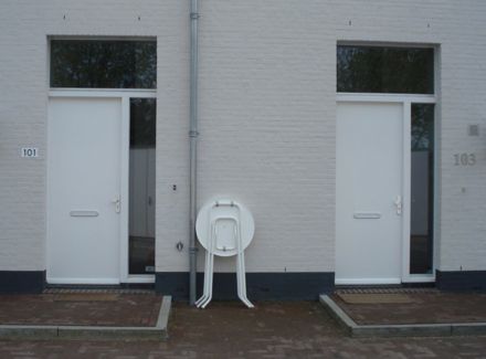 Terug naar de vraag: zou ik hier nu willen wonen? Gewoon in een huis in een rijtje zoals bijvoorbeeld aan de Bosfazant, waar een blokje van tien witte huizen staat? En zou ik dan het metalen huisnummer dat de architect heeft ontworpen accepteren, of zou ik dat net als twee andere bewoners vervangen door een eigen bordje? En moet het dan een nostalgisch blauw geëmailleerd bordje zijn zoals op nummer 97, of juist het allergoedkoopste standaardbordje zoals op nummer 101. En wat doe je dan eigenlijk met het originele huisnummer? Bewaar je dat?