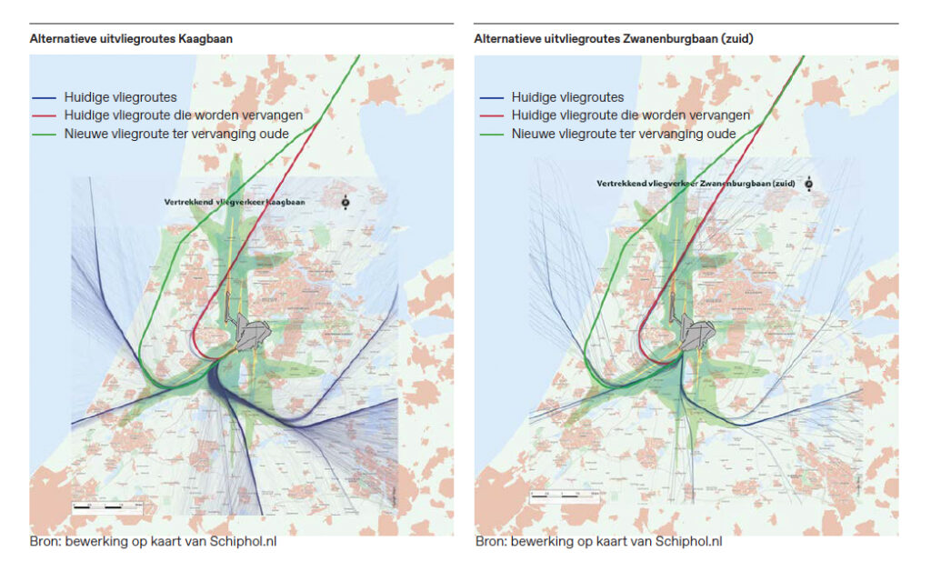 Deze studie concentreert zich op de uitvliegroutes. Want die zorgen niet alleen voor de meeste overlast, maar zijn in tegenstelling tot de internationaal bepaalde aanvliegroutes ook eenzijdig door Nederland te wijzigen. Bij wijze van spreken met een pennenstreek.