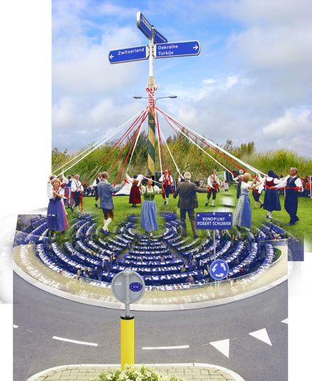 Zou de rotonde ook geschikt zijn om de pols van de Europese gemeenschap op te nemen? Nieuwsgierig trokken we naar Brussel en daar vonden we aan de voet van het hoofdkantoor van de Europese Commissie een forse rotonde, die deerlijk ligt te verpieteren. Zelfs de aanduiding rotonde is haar ontnomen: ze heet het Schumanplein, alleen de Franstaligen spreken nog van het Rond-point Schuman.