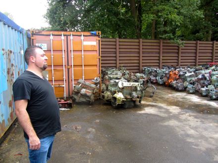 Als de auto het terrein van de sloperij opdraait, stapt Kennedy meteen uit en begint zijn rondgang over de ruim een hectare grote sloperij. Bedachtzaam loopt hij in zijn smetteloos lichte kleren tussen de stapels motorblokken en de geparkeerde auto’s, hij kijkt en kijkt. Jan, van een afstandje: ‘Ik heb echt respect voor wat zij met hun handen kunnen. Hier worden onderdelen alleen nog maar vervangen, maar daar repareren ze nog echt.’ En zijn handel vaart er wel bij, want hier zouden de meeste van zijn onderdelen als schroot naar de smelterij gaan.