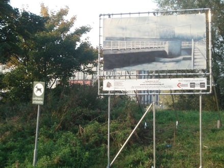 Dat realiseerde ik me in noord bij de afvaart aan de Buikslotermeerweg. Hier staat, op een klein podiumpje dat over het Noord-Hollands kanaal steekt, een schilderij van de koepel van het Centraal Station met daarvoor een betonnen kolom van het busstation in aanbouw. Hier moet het schilderij zich teweer stellen tegen een wirwar van concurrerende beelden en borden.