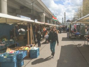 Niet alleen families klonteren samen, de markt is ook langs etnische lijnen geconcentreerd. Neem de handel in olijven en mezze, die is in handen van vijf Marokkaanse kooplui. Nou vullen die vijf elkaar nog min of meer aan – je kunt als klant vergelijken en kiezen –, maar de vijf Afghaanse kooplui met fietsonderdelen zijn vooral elkaars concurrenten, verwikkeld in een race naar de bodem met kettingsloten van vijf euro. Ze voeren weliswaar verschillende merken maar die komen volgens Sabur Alizada allemaal uit dezelfde Chinese fabriek en hij is de eerste om te zeggen dat het rotzooi is.