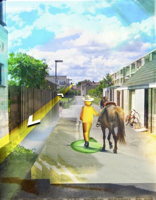 Spaziergangswissenschaft claimt die denkkaders te doorbreken, maar zou het ook in Veenendaal werken? Ik besluit tot een wandeling van het bedrijventerrein in het noorden, via de genoemde drie wijken naar het bedrijventerrein dat de stad aan de zuidzijde afsluit. Enigszins lukraak loop ik dwars door de stad, een half oog op de trackfinder die mijn route vastlegt in Google Maps, en ontdek een stad die veel levendiger en rommeliger is dan ik me had voorgesteld. Ze staan niet op de kaart en ook in Streetview zie je ze niet, maar ze zijn er weldegelijk: achterommetjes, gangen achter de huizenblokken, uitgesleten voetpaadjes over veldjes, brandgangen tussen bedrijvenpanden. Te voet ben je bevrijd van de autoblik waarmee Streetview je opzadelt. Overigens maakt Google sinds kort ook gebruik van trikes, driewielige fietsen met camera’s, maar dan nog komen alleen de gebaande paden in beeld.