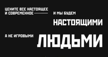 Onder een mix van beelden van oude en nieuwe demonstraties, zegt Willinger in cryptisch Engels: ‘Modernity struggles for empowerment, in Russia and elsewhere.’ Ze volgt Elena bij een demonstratie, waaraan ook Donatas deel blijkt te nemen. Hij wordt vergezeld door een klein groepje volgelingen, allemaal in het zwart met een wit streepje, allemaal met spiegels op hun hoofd. ‘Iets geheel nieuws is groeiende, iets zonder naam, iets zwart-en-wits’, scanderen ze met gebalde vuisten. Andere demonstranten reageren verbaasd: wat is dit, wat willen ze? Iemand denkt dat het jonge aanhangers van Poetin zijn. En dan neemt de leider – is het Donatas zelf, dat is lastig te zien door de bivakmuts – het woord: ‘We zijn allemaal een beetje in de toekomst, we zijn allemaal een beetje bang.’